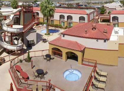 If you're looking for the perfect romantic get-a-way and would like to find a hotel room in El Paso with a hot tub, visit one of the airport hotels listed here. Feel free to stop by to visit, or call them to reserve your room with a jetted hot tub. They'll accommodate you with the intimate and relaxing setting that you're looking for. Remember, there is always someone at their 24 Hour Front Desk!